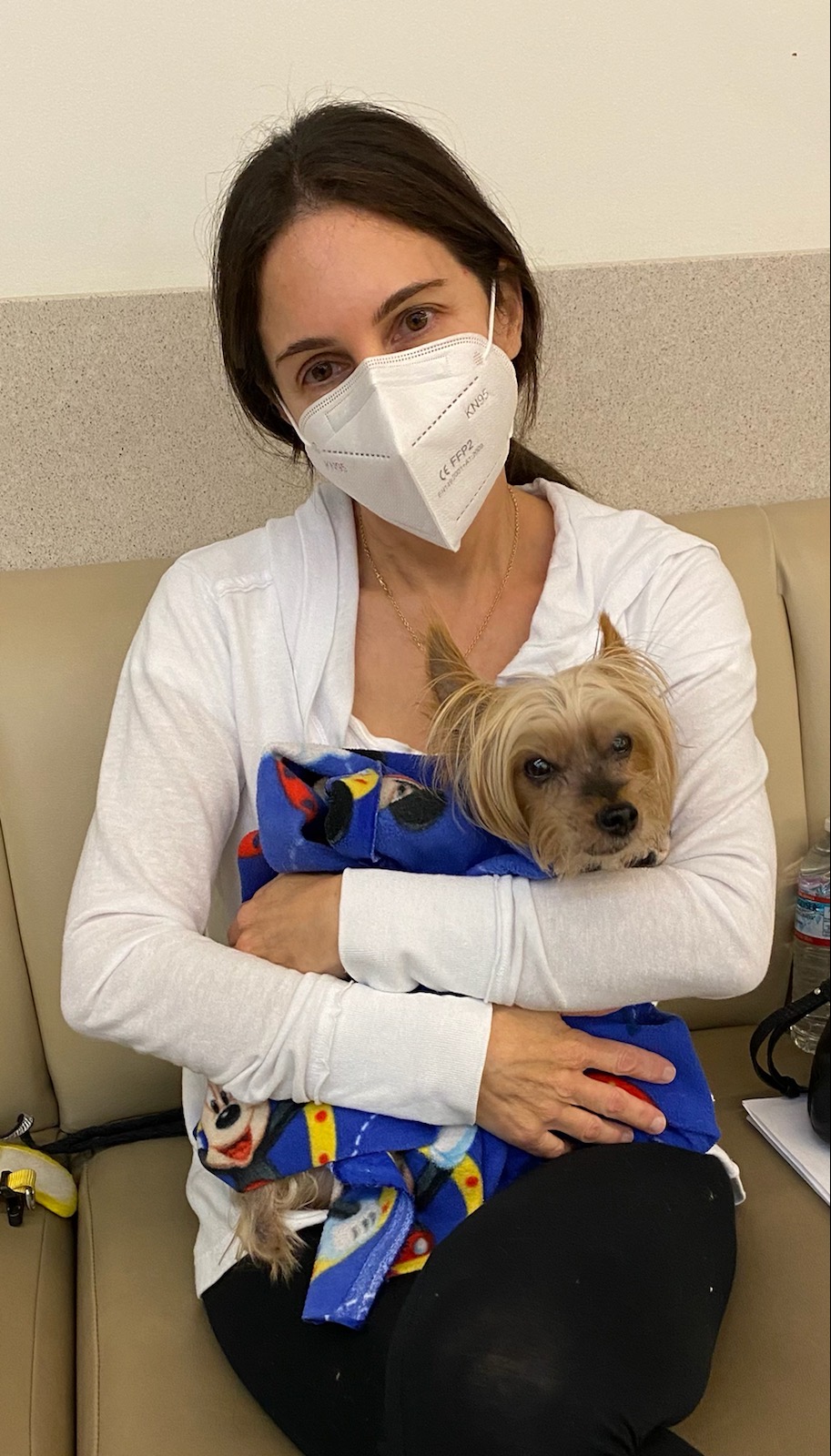 So on Wednesday, I dressed him in his new sweater and took him to meet his new foster mom. It was such a happy day on that Wednesday and later that evening his foster mom (Ellen)sent photos of Mickey walking with his new Yorkie friends, and later resting in his bed as well as on other beds in her home. All seemed well and it was such an awesome day! But that night Mickey vomited.