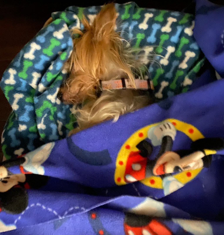 The next day, Thursday, the foster mom (Ellen) took Mickey to her Vet for a check up as she prepared him for his new adoptive family. The results of the labs and testing came back on Friday and I received a request for a conference call, with others, for an update regarding Mickey. Turns out he was a very sick little boy, maybe was dying. He could not eat, had diarrhea, wobbled when he walked, was losing hair, was dehydrated and more. Lesson number four was how professional, knowledgable, and experienced these ladies were. They sensed problems they had not expected when they were called to accept Mickey. It was time to let them do their jobs for this Yorkie. I was in shock, remembering the happy bright eyed little dude I had just met.