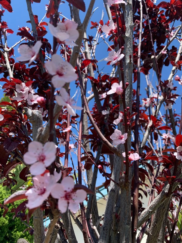 This is a holy season for many people. Today is a sacred day for many – Good Friday. In addition, Spring seems to have finally arrived. Joyfulness is in the air. People seem happy during their holiday shopping for meal planning. Spring break travel options are on the news frequently. The seasonal rains, winds, tornados, and other weather events are giving us a break for the weekend. When outside this morning, I looked up to see the new blooms on my tree. My neighbors smiled and chatted as we all dragged our trash cans out for pick up. Positivity is in the air as we enter the weekend. My encounter with the pink blossoms caused me to pause and give gratitude for all that we have.
